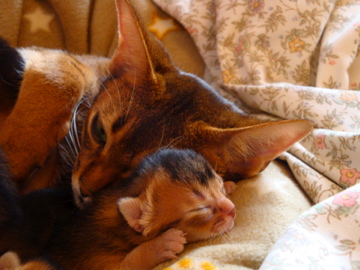 I am sure you want to see some baby pics, right? Here I am, at a few days old, with my wonderful Mama Tama: