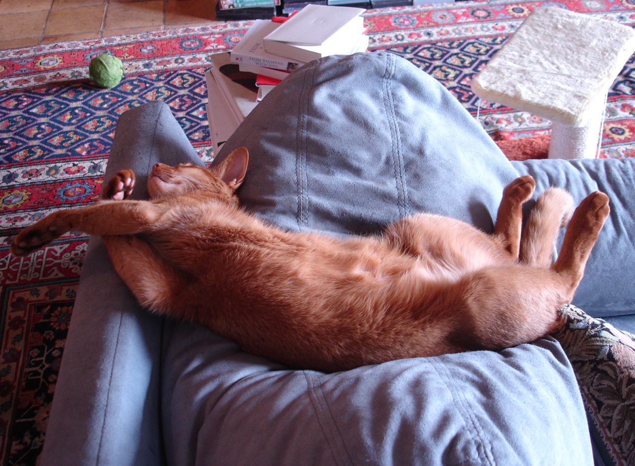 Here is little (big trouble) Ryū enjoying #1's bed first thing in the morning:
